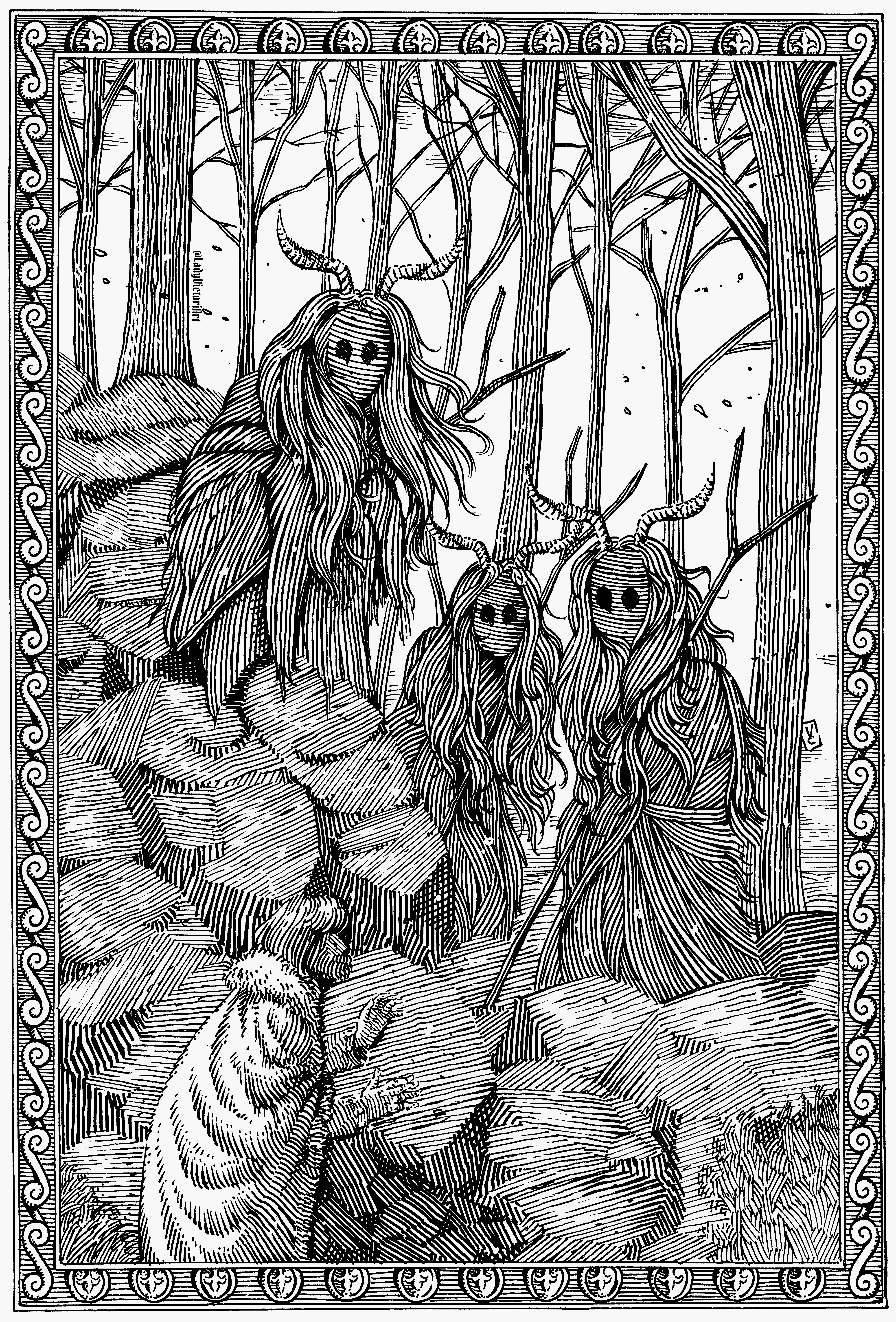 The three wyrd sisters, powerful witches with second-sight, met the ill-fated MacBeth and prophesied his future ascension to the throne of Scotland.