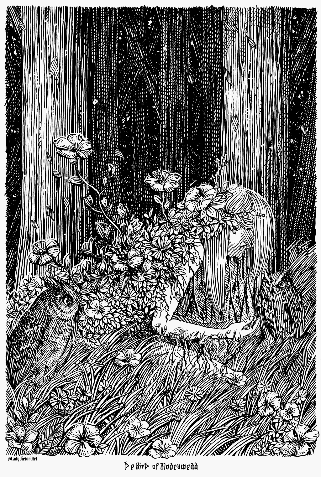 Lleu Llaw Gyffes, a powerful Welsh warrior, was cursed by his mother Arianrhod to never have a human wife. Gwydion, his father, and Math, his great-uncle, counteracted this curse by creating a wife, Blodeuwedd, from the flowers of the forest.