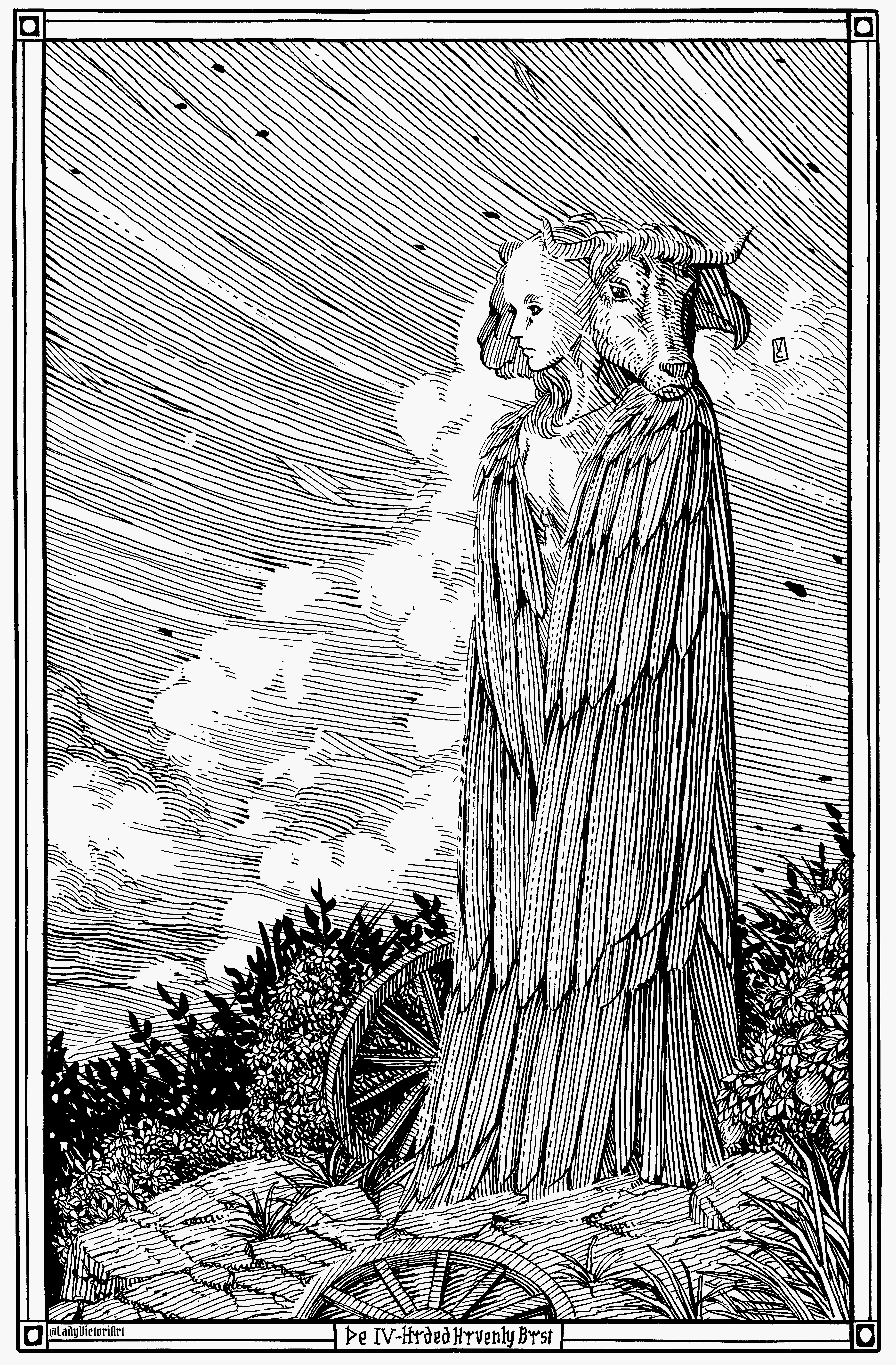 The Four-headed heavenly creature was witnessed by Ezekiel, a prophet and priest of ancient Israel. Ezekiel saw the creature, with the heads of a lion, human, ox, and eagle, stand beside the heavenly chariot of Yahweh.
