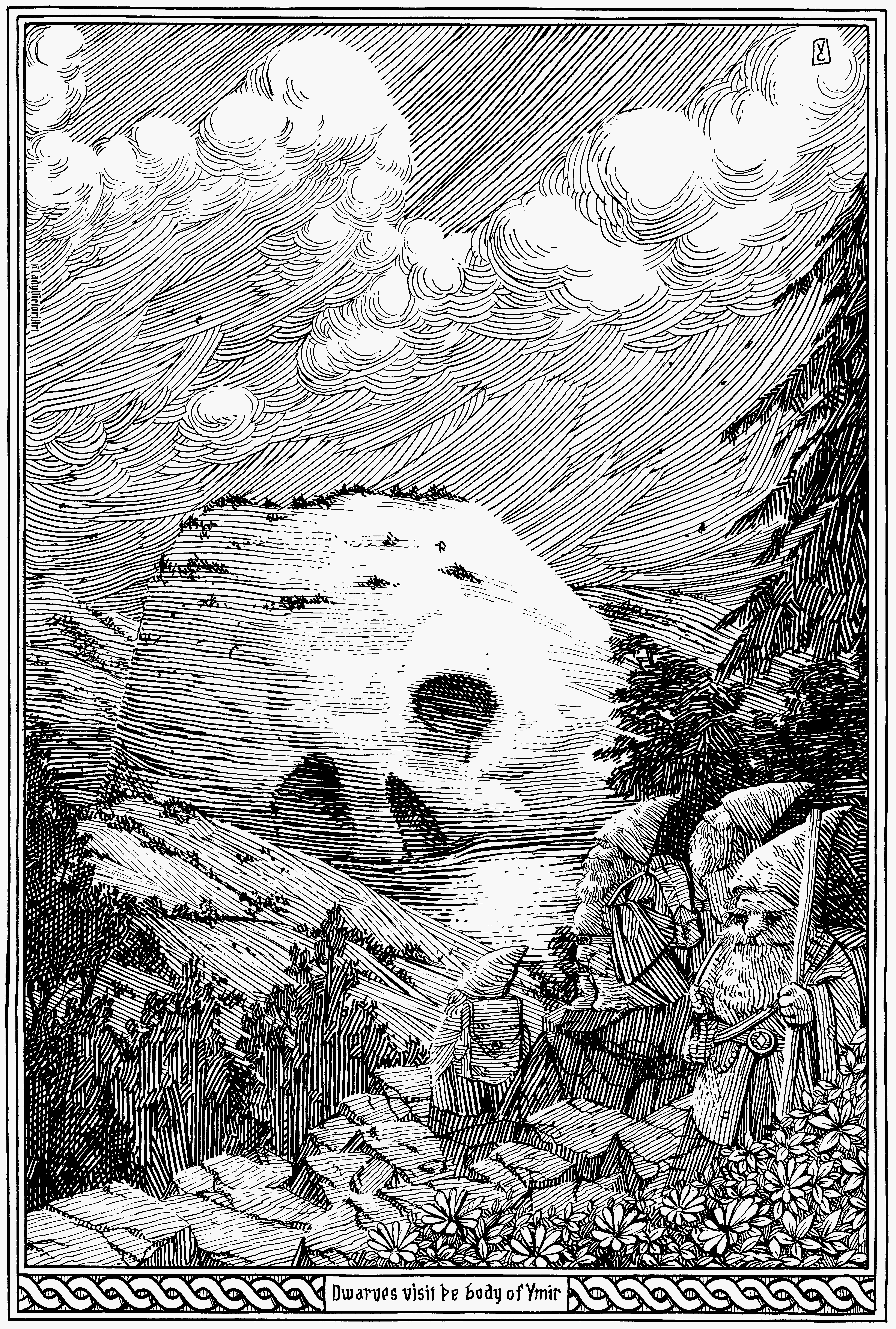 Ymir was a primordial giant who lived many ages ago and from whose body the landscape was formed. The dwarves are known to have been given life from the blood of Ymir, and so many make a journey to visit what remains of the great old ones body