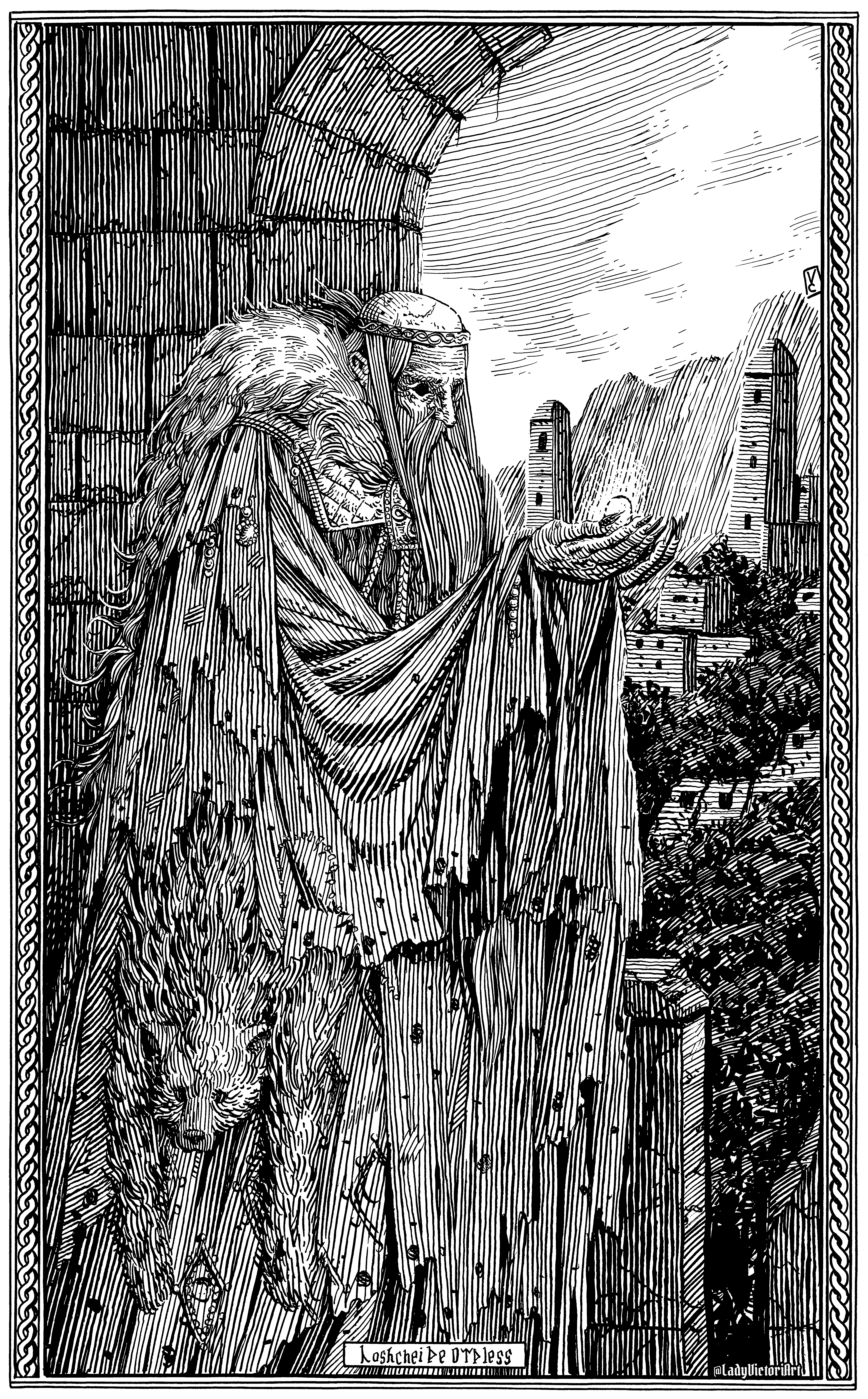 In the faraway land of Lukomorye lived the powerful sorcerer Koshchei. He was called ‘Deathless’ for he was known to have granted himself a kind of immortality by trapping his death within an egg which he hid away. Should the egg ever be found and destroyed, however, he would instantly die.