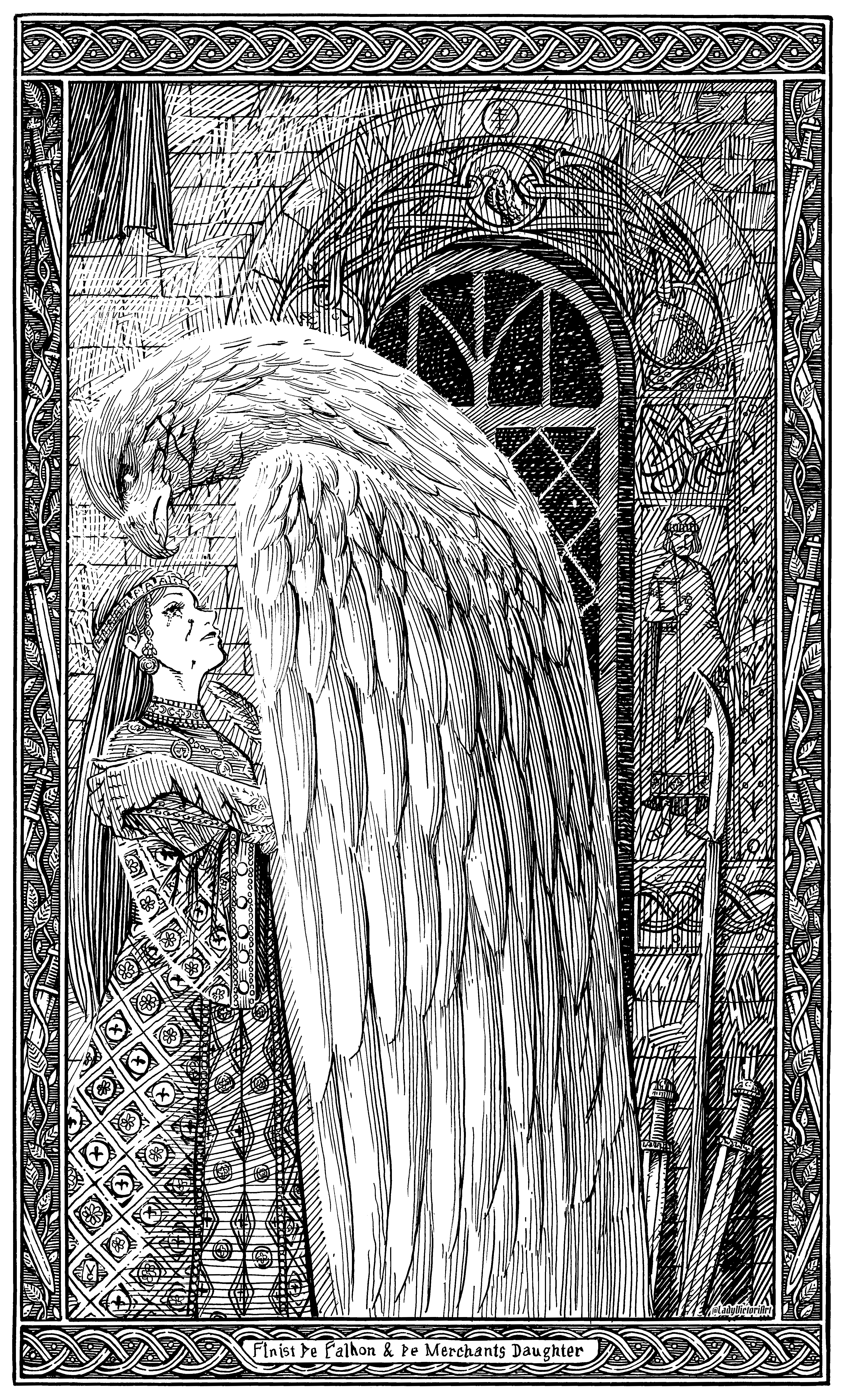 A young merchants daughter asked her father to gift her the feather of Finist the Falcon; a magical feather which brought the man-falcon to her, and the pair fell in love. All was well until the girl’s elder sisters grew jealous of her. They placed knives in the young girls window so that when her avian lover flew to meet her, he would be cut by the blades.