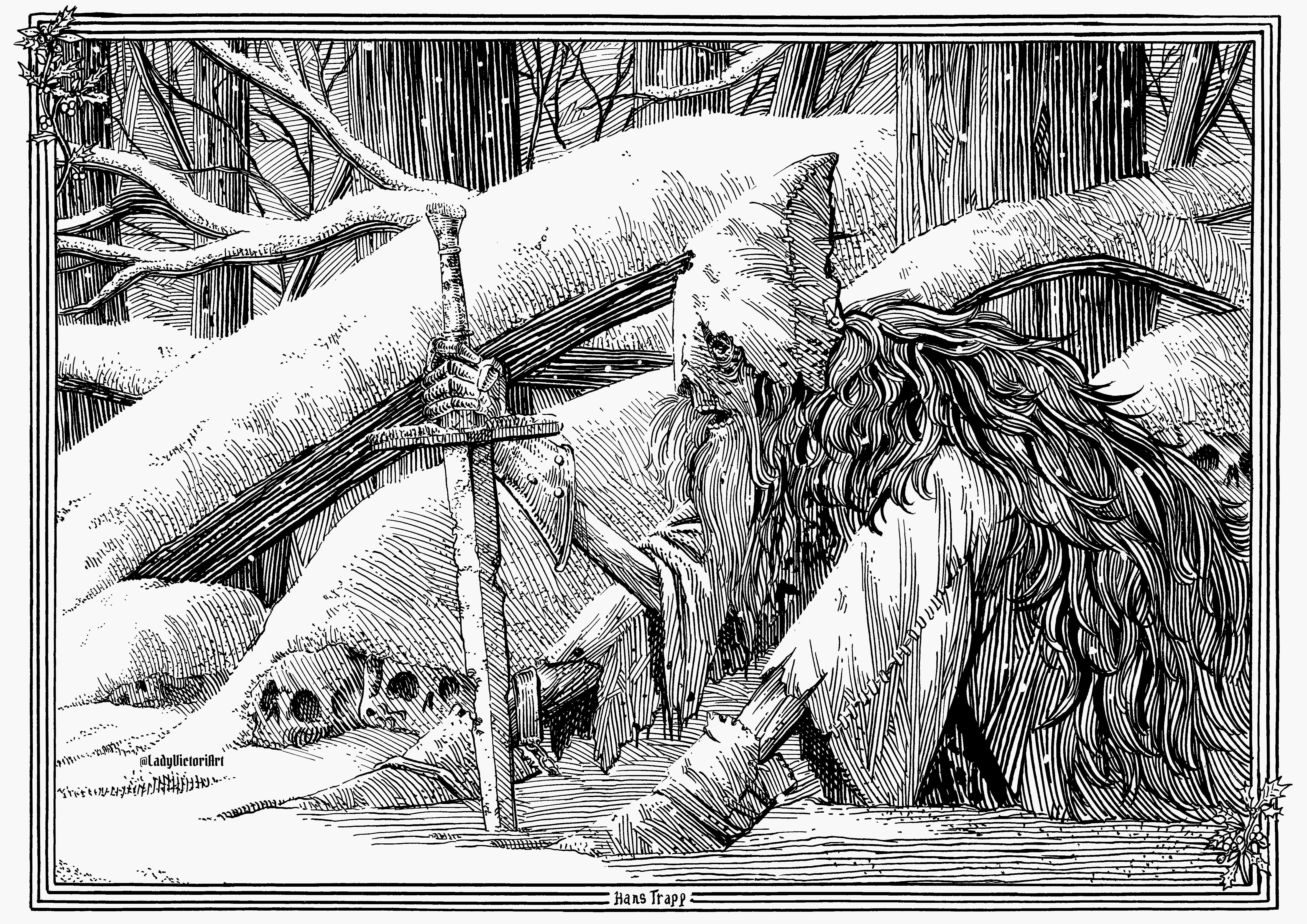 Hans Trapp is a frightful being said to emerge on Christmas to terrorize misbehaving children. He was once a proud Knight named Hans von Trotha who turned to foul magic and cannibalism. As punishment, God transformed him into a scarecrow and cursed him to eternally wander the Palatinate woods of Southern Germany.